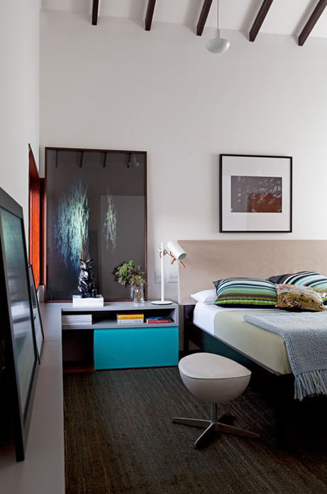 Espaços amplos, integração de ambientes, acabamentos diferenciados com uma cartela de cores inusitada, onde o amarelo, turquesa e berinjela dão um toque moderno no mobiliário de design contemporâneo.