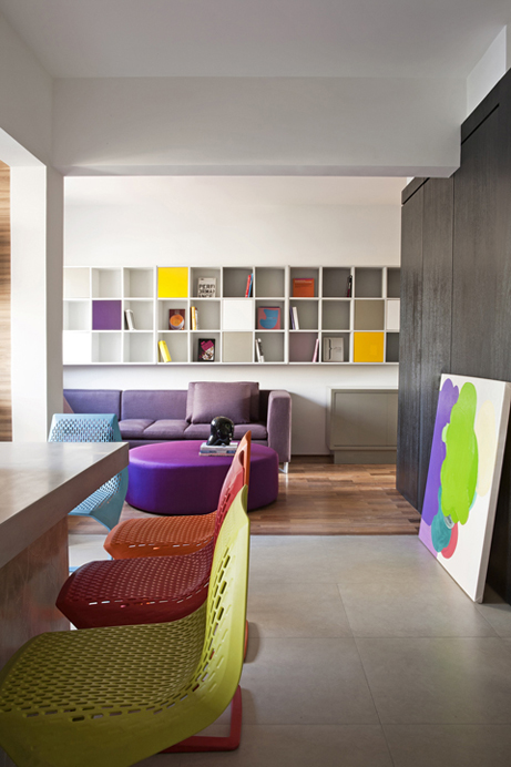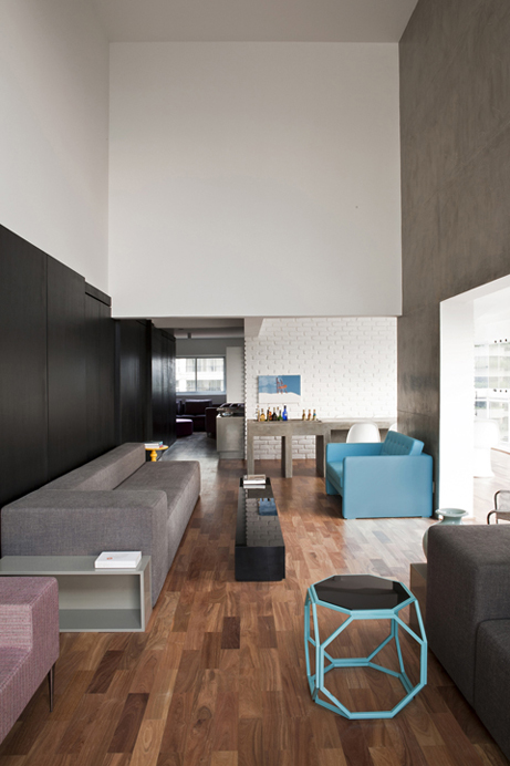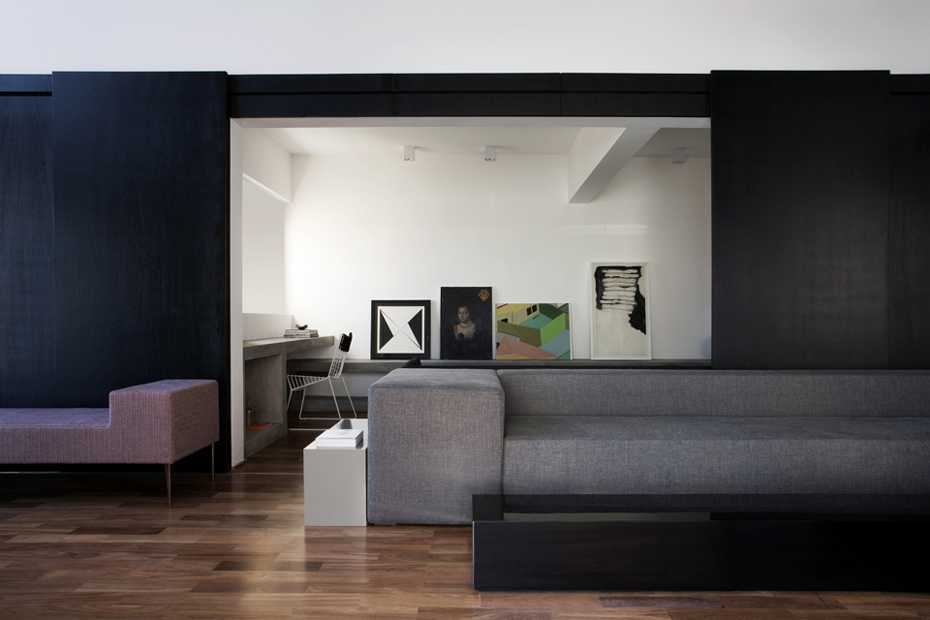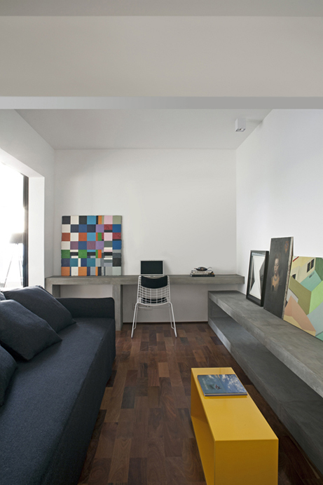Criei este projeto com layout minimalista para um casal de empresários com dois filhos. Grandes vidraças emolduram este apartamento com localização privilegiada para o parque Ibirapuera, paredes foram demolidas com integração dos ambientes dando ares de loft. Um grande painel ebanizado com portas de correr quando se quer divide home, lavabo e porta principal da entrada tudo muito discreto sempre valorizando a arquitetura, a madeira cumaru do piso aquece os ambientes e dá o contraste com cimento queimado e a pintura branca das paredes. No jantar apliquei tijolos de demolição com pintura branca na parede principal que é outro toque rústico que faz contraponto com toda modernidade e design do mobiliário. A iluminação toda indireta através de nichos deixa o decor cinematográfico, Na tapeçaria tons sóbrios contrastam com pinceladas nas cores turquesa, laranja, amarelo e rosa.